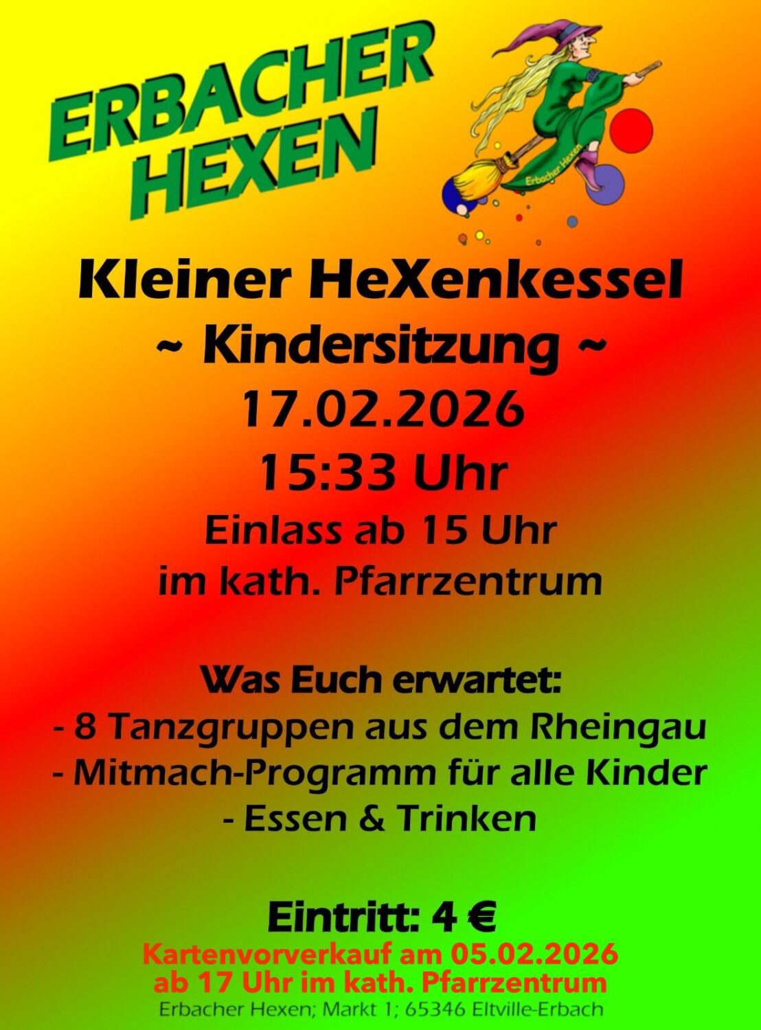 Ihr habt Lust als Wagen- oder Fußgruppe dabei zu sein?? Dann meldet euch gern bis zum 04.12.2025 bei uns unter organisation@erbacher-hexen.de