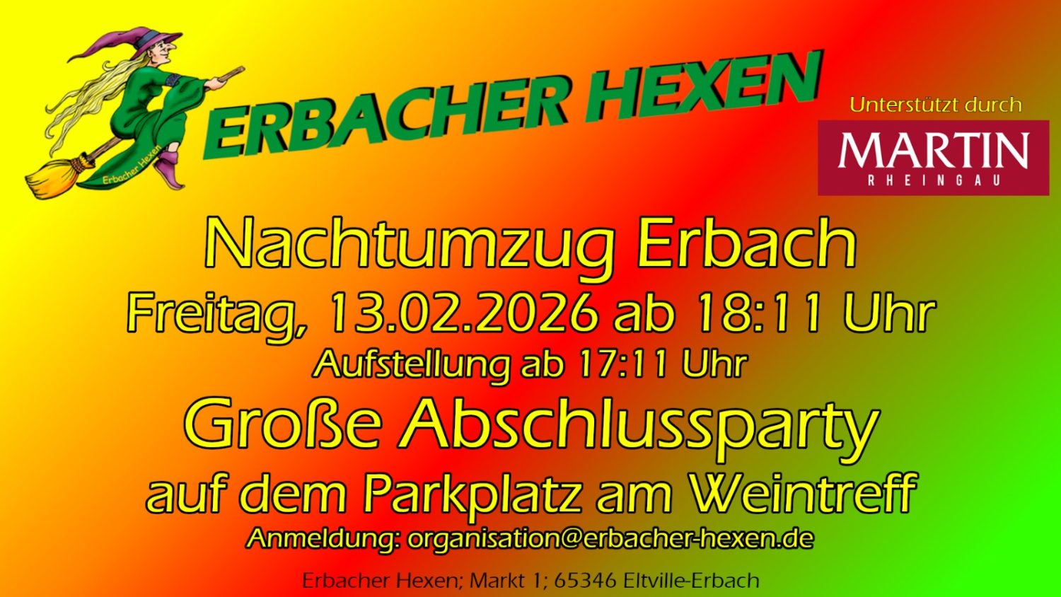 Ihr habt Lust als Wagen- oder Fußgruppe dabei zu sein?? Dann meldet euch gern bis zum 04.12.2025 bei uns unter organisation@erbacher-hexen.de